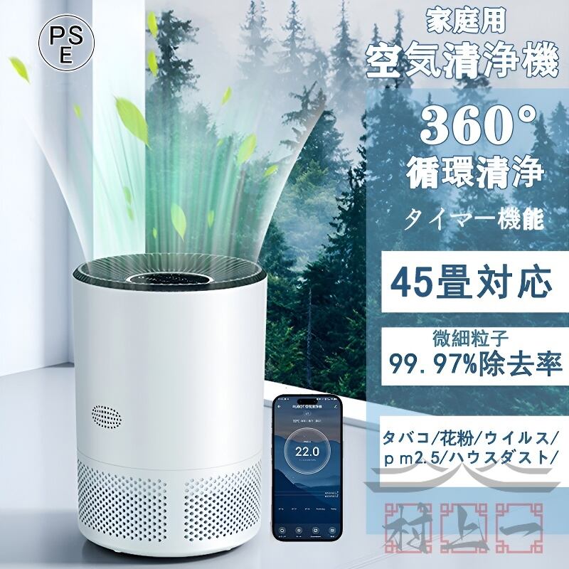 空気清浄機 UV除菌 45畳 小型 軽量 360°循環清浄 三段調整 タイマー機能 お手入れ簡単 リモート制御 静音 ペット 花粉 ホコリ 脱臭 花粉対策グッズ 業務 家庭用