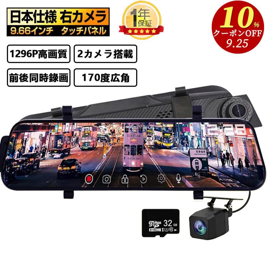 ドライブレコーダー 日本製 ミラー型 2カメラ 右ハンドル 1296P 10.0インチ 駐車監視 170度広角 音声記録 フルタッチパネル Gセンサー ノイズ対策p210014281d78