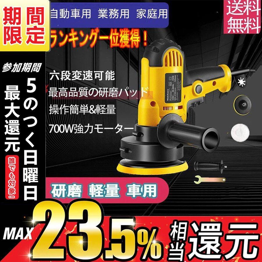 ポリッシャー 電動 サンダポリシャー 車 研磨機 電動 125mm 700W強力モーター 六段変速 サンダポリシャー 操作簡単 研磨 軽量 車用 車磨き 家庭用p12005942559e5