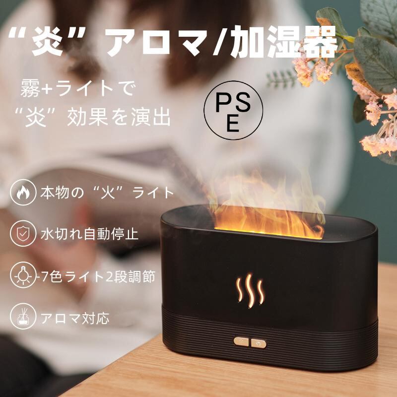 加湿器 アロマ 大人気 超音波式 アロマディフューザー 部屋 日本語説明書 おしゃれ 小型 卓上 LED照明 炎 静音 空焚き防止 オフィス 会社 家庭用 寝室 乾燥対策