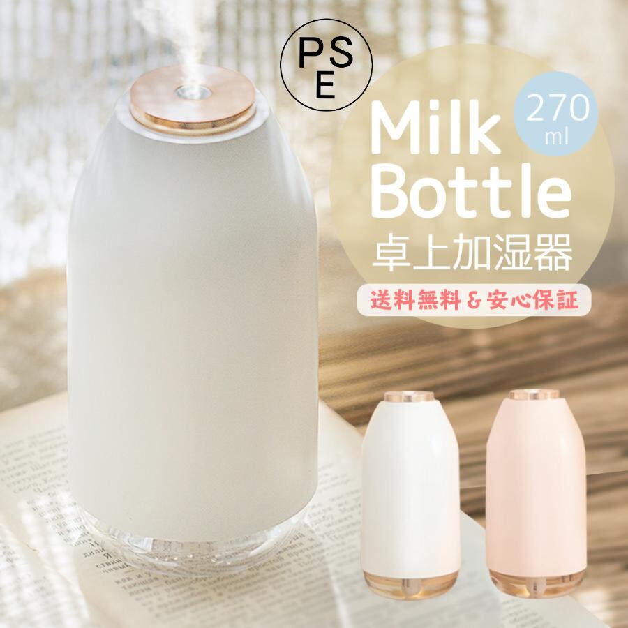 ボトル型 超音波式 加湿器 270ml お洒落なデザイン 置き 卓上 オフィス デスク テーブル LED ライト お手入れ楽々 充電式 USB 常夜灯 次亜塩素酸水アロマ 静音