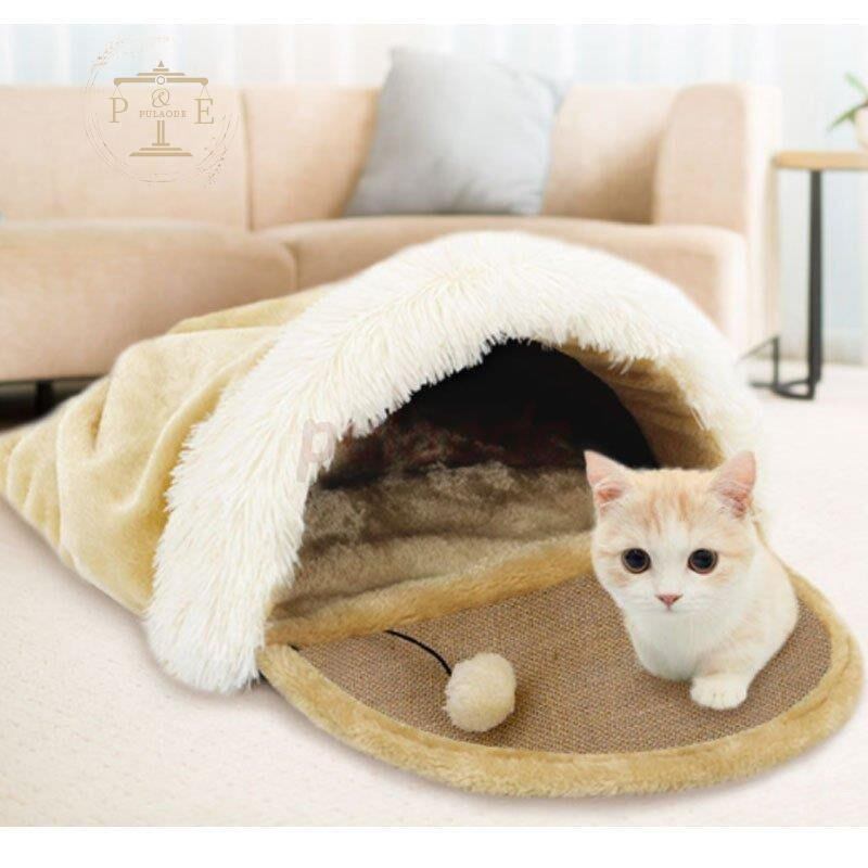 猫ベッド ペット用寝袋 キャットハウス 爪とぎ 爪みがき 猫 猫用品 ねこハウス 猫用 クッション ペット かわいい おしゃれ インテリア 寝ぶくろ保温クッションmyp332145266686e