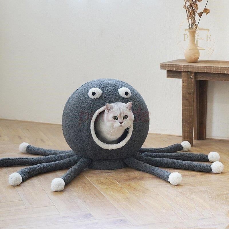 猫用ベッド ペットベッド ペットハウス キャットハウス 猫 犬 ネコベッド ペットグッズ ペット用品 おもしろ 個性的 タコ たこ 動物 ドーム 丸myp33216938373df