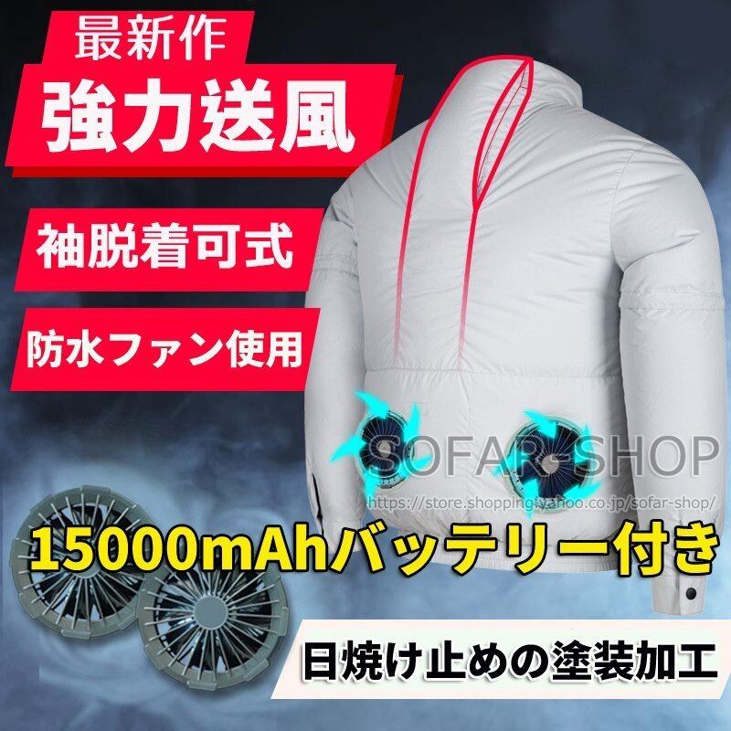空調作業服フルセット 15000mAhバッテリー付き 防水ファン使用 袖脱着式 2021新作 空調ジャケット 2個ファン付き作業着 クールジャケット 長袖/半袖 2WAYktf1540258513601
