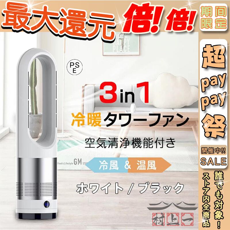 扇風機 羽なし 空気浄化機 冷暖兼用 ヒーター セラミックヒーター 冷風機 2秒速暖 サーキュレーター ファンヒーター 3段階切替 リモコン付き PSE認証済み