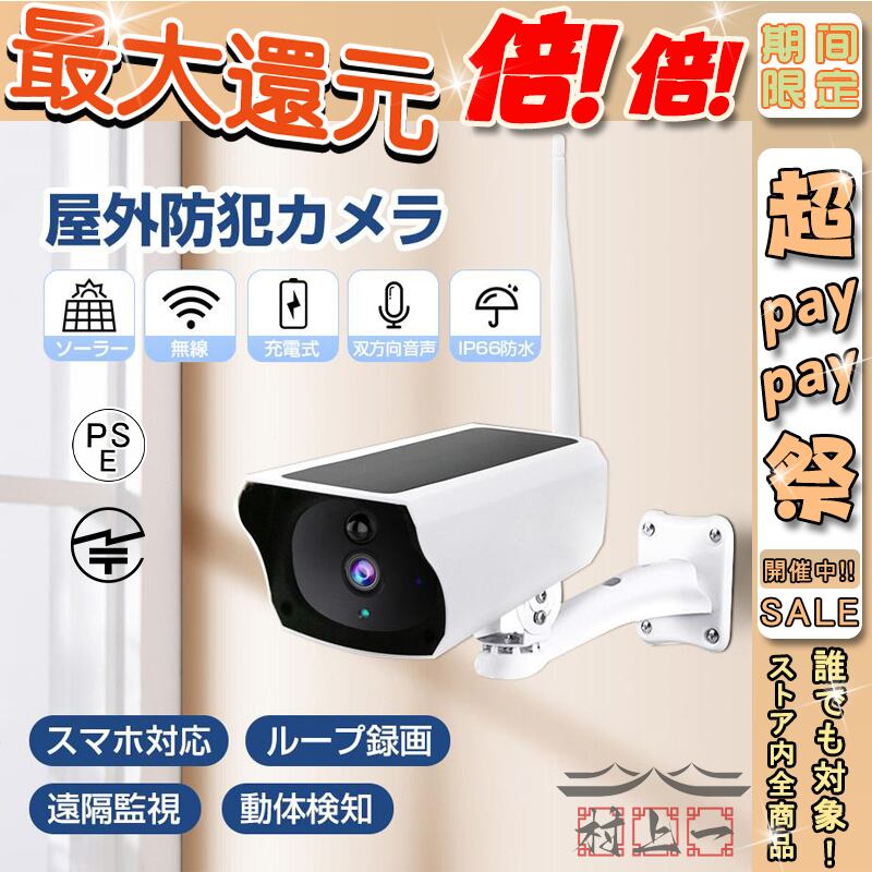 防犯カメラ 家庭用 無線 ソーラー ワイヤレス 屋外 IP66防水 電源不要 工事不要 200万画素 見守りカメラ 屋内 防塵 WIFI 人感録画 動作検知