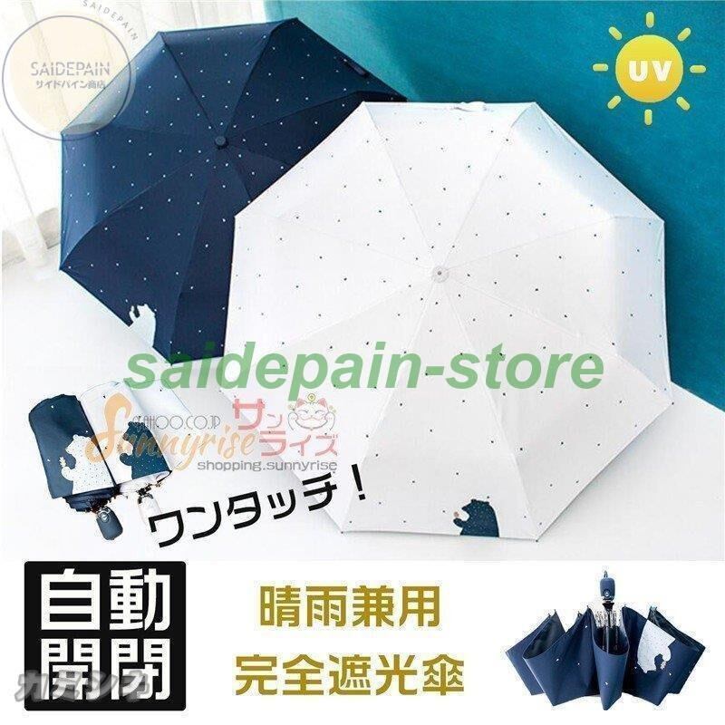 日傘 レディース くま柄 ネイビー 白 完全遮光 折りたたみ傘 晴雨兼用 自動開閉 UVカット 軽量 折り畳み 日傘 紫外線対策 耐風傘 母の日 雨傘 かさ 通学旅行ys27802146057c4