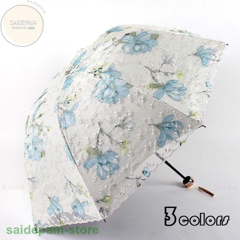 折りたたみ傘 レディース 日傘 雨傘 花柄 晴雨兼用傘 折りたたみ傘(3つ折) 刺繍 オシャレ 可愛い 女性用 レース 手動 傘袋付 8本骨 UVカット 紫外線対策ys278095586e74e