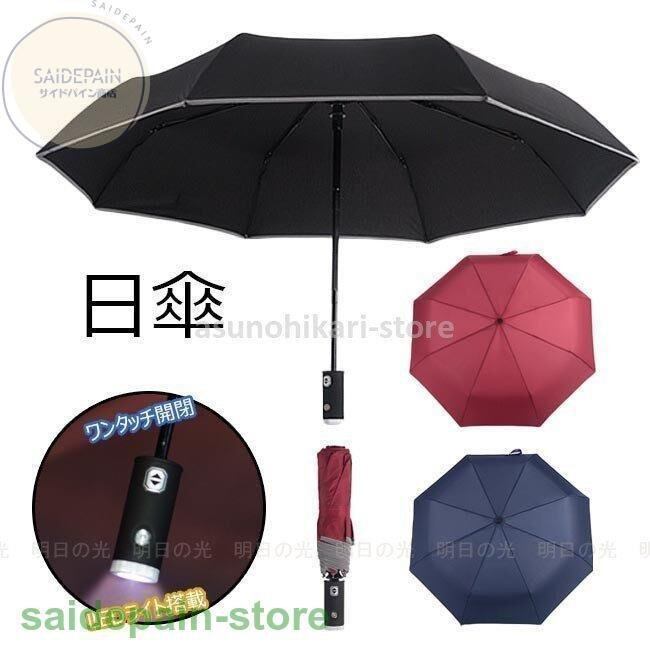 日傘 自動開閉 LED搭載 折りたたみ 三つ折 晴雨兼用 遮光 遮熱 撥水加工 男女兼用 レディース メンズ 紫外線対策 傘 春 夏 秋 春夏新作ys2781267740ae7