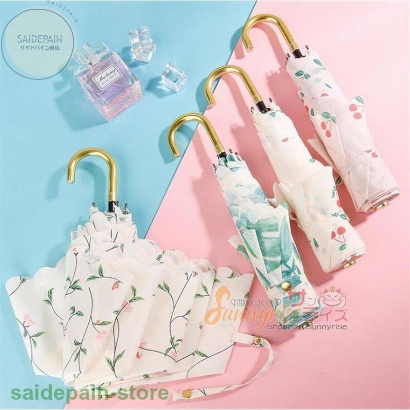 折りたたみ傘 レディース 可愛い 3段折りたたみ傘 UVカット 花柄 チェリー柄 紫外線対策 日傘 雨傘 晴雨兼用 雨具 通学 通勤ys27817422573c0