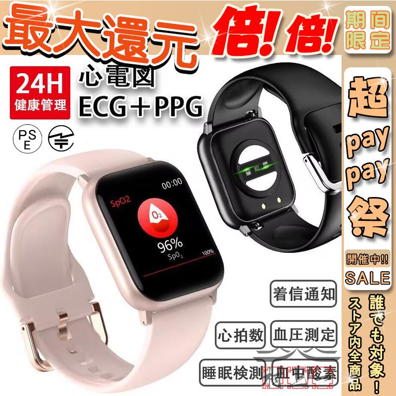 スマートウォッチ 日本製 センサー 心電図 24時間心拍数測定 血圧計 血中酸素 多機能 レディース メンズ スマートブレスレット iphone android 対応 IP67防水