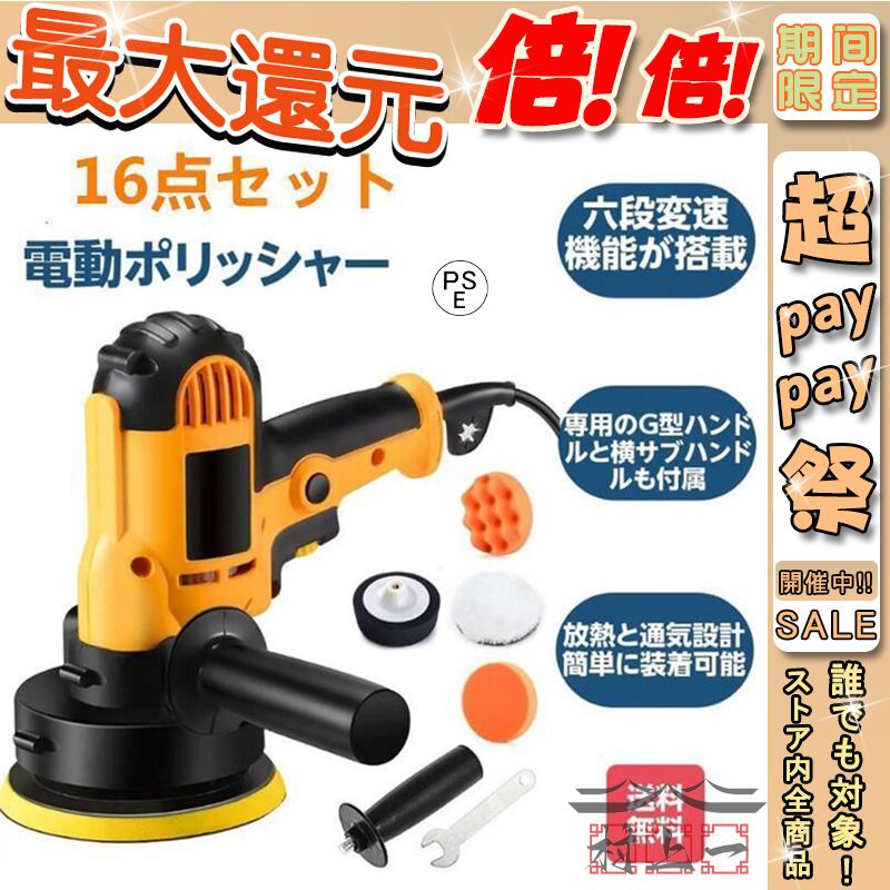 電動ポリッシャー 小型 車 充電式 700W 強力モーター 軽量 1.35KG 車用 EID 研磨機 研磨パッド付 六級変速 サンダポリシャー 洗車 車磨き 16点セット