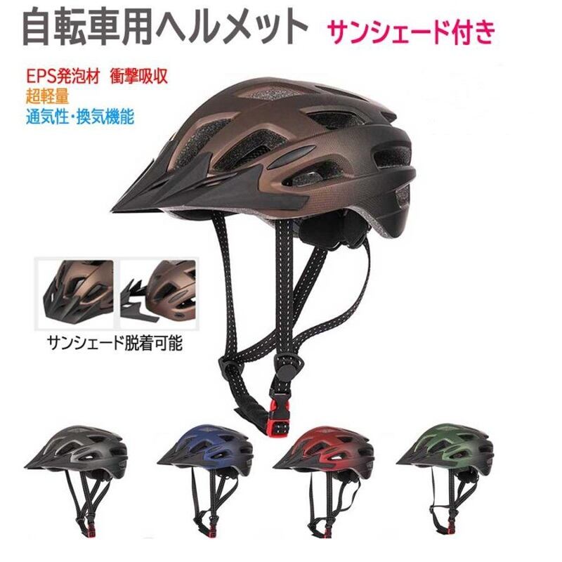 自転車ヘルメット サンシェード付き 超軽量 高剛性 フリーサイズ ロードバイク MTB サイクリング 通勤 通学 大人 学生 男女兼用 通気 グラデーションtk021268b4c5