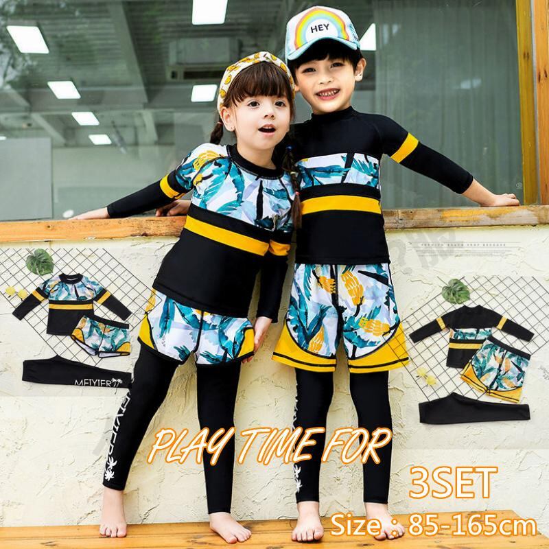 ラッシュガード 子供 水着 キッズ ジュニア 女の子 長袖 おしゃれ 大きいサイズ 3点セット 体型カバー 子ども 男の子 ガールズ かわいい リゾートyy1091869ff2