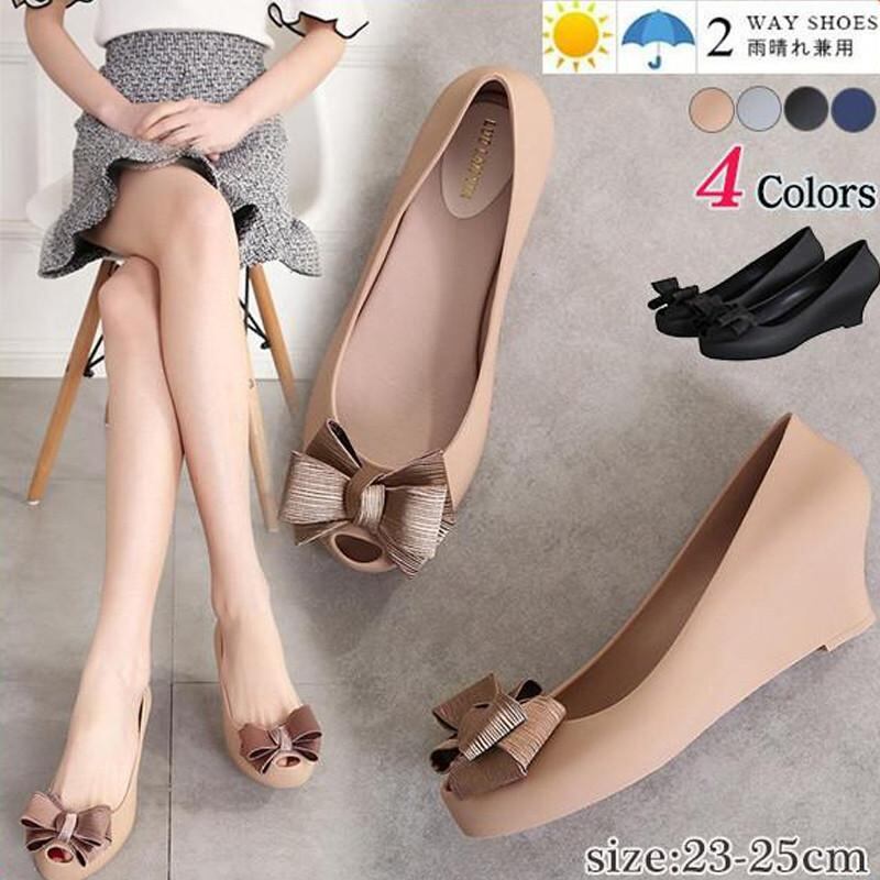 レインシューズ レディース レインパンプス パンプス 痛くない オープントゥ 防水 レディースシューズ リボン飾り 梅雨対策 PVC 雨の日 通勤yj017728e92c