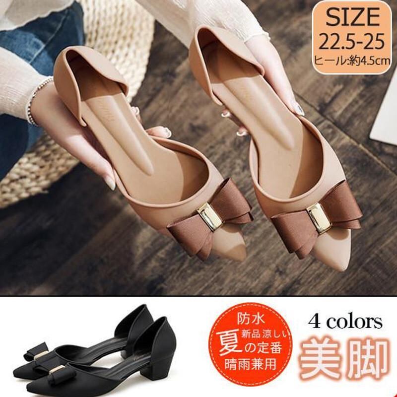 レインシューズ パンプス 痛くない 簡易防水 梅雨対策 PVC 雨の日 防水 サンダル シューズ リボン飾り 通勤 美脚 レディース レインパンプスyj0252166277