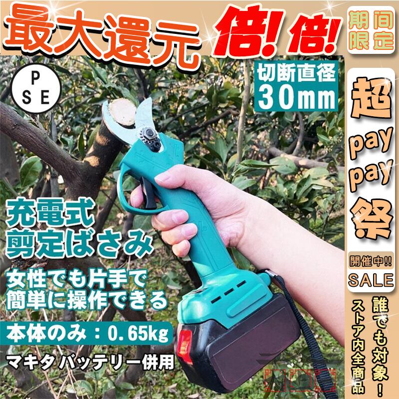 電動剪定ばさみ 電動剪定バサミ 電動ハサミ 枝切ばさみ 枝切り鋏 切断直径30mm 庭木 枝切り 軽量 ガーデニング マキタ バッテリー互換対応 おすすめ【本体のみ】