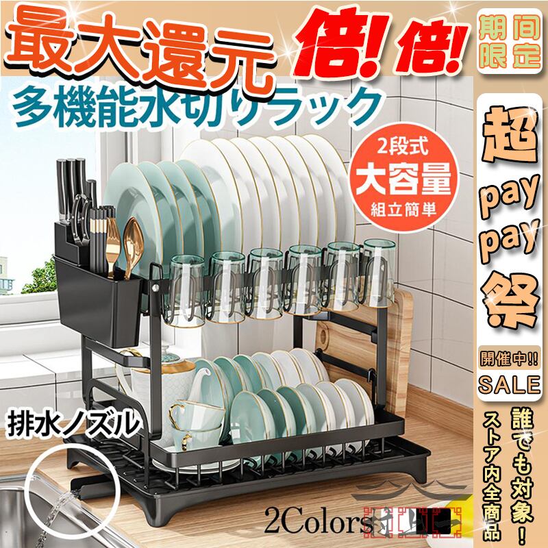 【2023年最新デザイン】 多機能水切りラック シンク上 水切り 2段 食器置き 水切りかご シンクサイド 排水ノズル 大容量 食器 シンプル 台所 キッチン用品