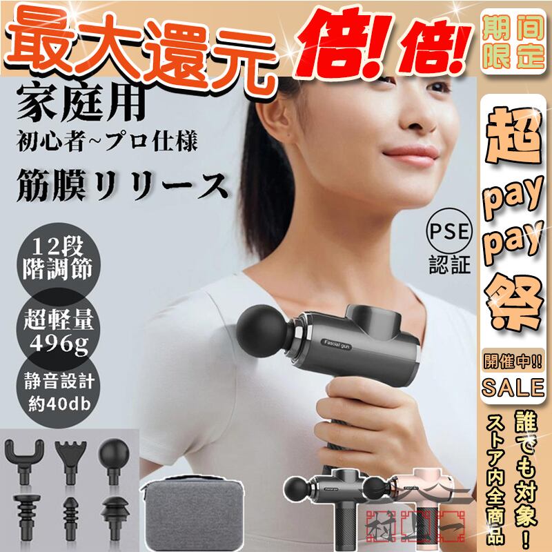 筋膜リリース マッサージ器 電動 小型 マッサージガン 首 肩 マッサージ マッサージ機 12段階調節 6種類ヘッド 軽量 ハンディマッサージャー 敬老の日