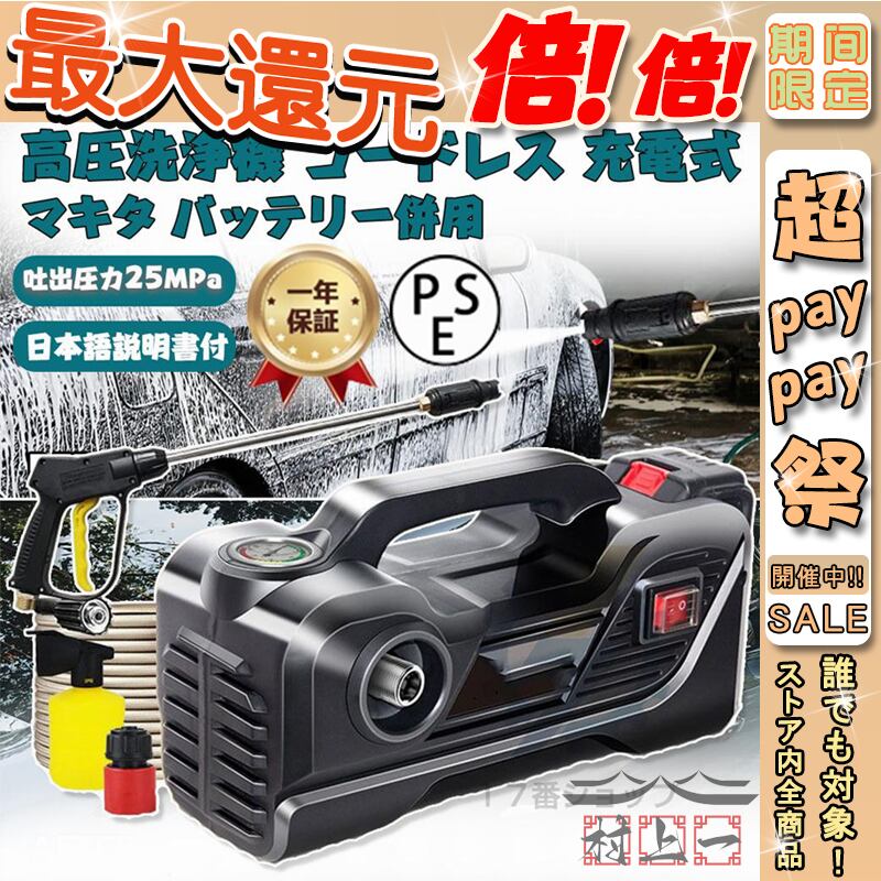 高圧洗浄機 充電式 コードレス 25MPa 業務用 家庭用 マキタ バッテリー併用 水道直結 13点セット 強力噴射 洗車大掃除 掃除 自吸タイプ PSE認証