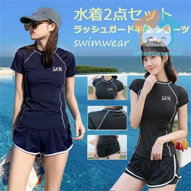 水着 レディース 2点セット ジム 50代 水着 体型カバー Tシャツ ショートパンツ 海 ビーチ 温泉 プールYY090324a5df