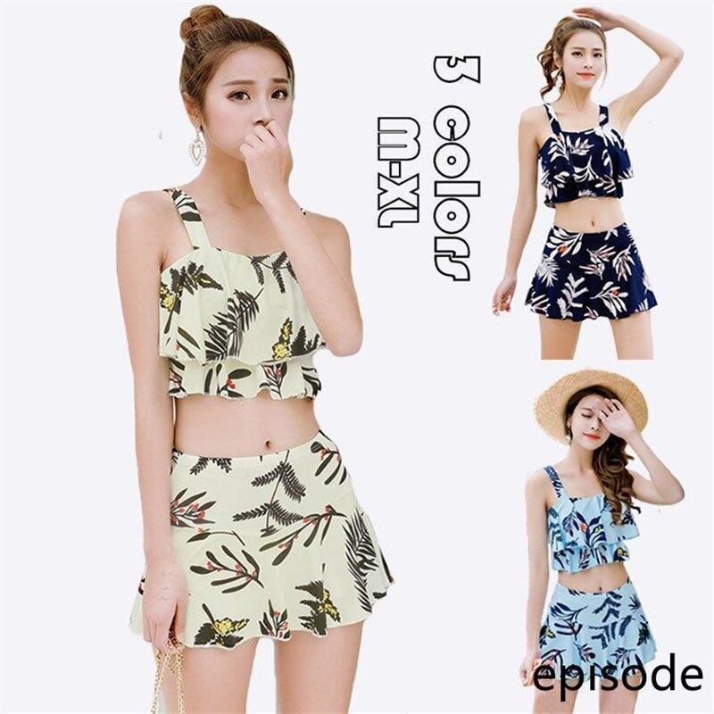 水着 レディース 体型カバー ビキニ スカート 2点セット 花柄 フリル キャミソール+スカート可愛い 温泉 海水浴 人気 女性用 おしゃれ 20代 30代 40代 3色YY1042376056
