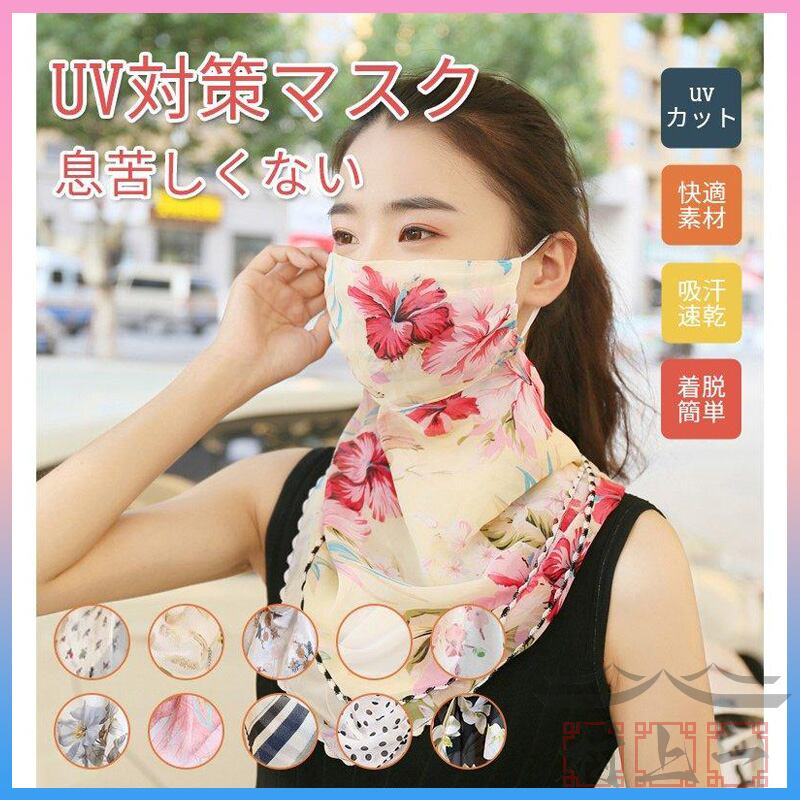 マスク 日焼け防止 花柄マスク UVカットフェイス カバー ひんやり サラサラ 首 ゆったり 痛くない 日焼け止め 大きい 紫外線対策 母の日 プレゼントp21007748d665