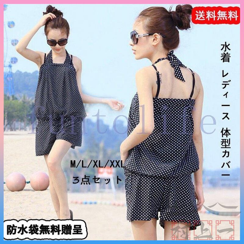 【防水袋贈呈】水着 レディース 体型カバー水着 40代 30代 20代 60代 ママ水着 ビキニ サロペット ロンパース 3点セット ぽっちゃりyy03718727fd