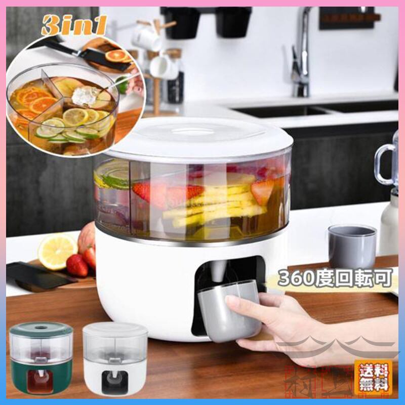 冷水筒 3in1 360度回転可 蛇口付き 冷蔵庫 大容量 ジュース アイスティー ドリンク 麦茶ポット ピッチャー ディスペンサー おしゃれ