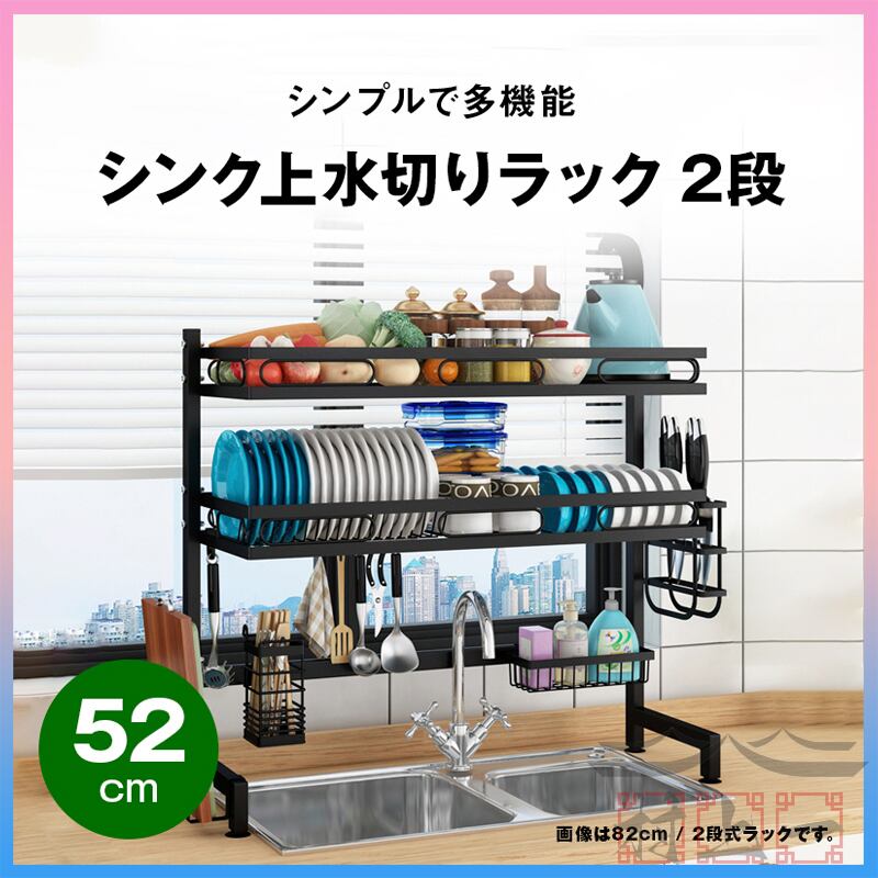 水切りラック シンク上 2段 スリム Sサイズ | シンク上水切りラック 炭素鋼製 水切りかご シンク上 大容量 タワー シンク横 狭い 収納 箸立て コップかけ まな板立て 包丁ラック キッチン ラック 乾燥&収納 水切り ラック