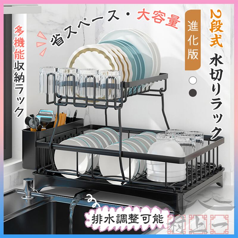 水切りラック 2段 スリム ステンレス 折りたたみ シンク上 伸縮 スペース コンパクト 一人暮らし 突っ張り 水切り キッチン 大容量 水切りかご 水切りカゴ 収納 箸 流れる つっぱり 横置き おしゃれ 箸立て まな板立て
