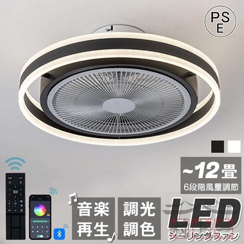 シーリングファンライト DCモーター LED おしゃれ 音楽再生 北欧 Bluetooth対応 6畳-12畳 調光調色 ファン付き照明 6段調節 静音 軽量 扇風機 省エネ