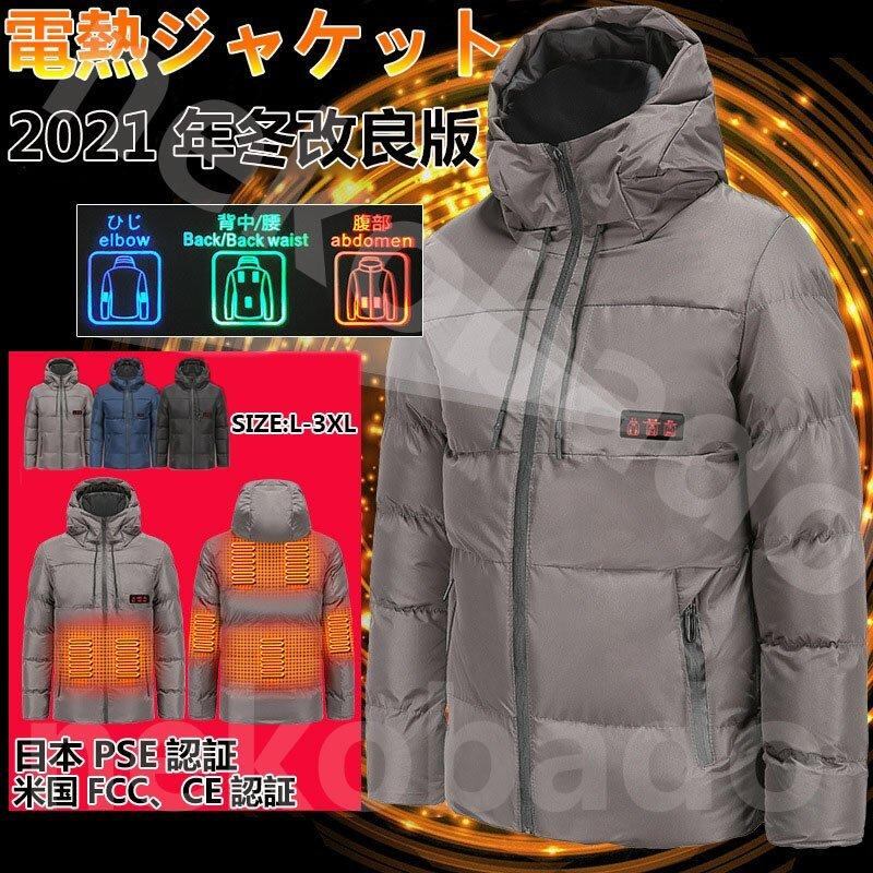 電熱ジャケット PSE認証 電熱ベスト 日本製繊維ヒーター 7箇所発熱 暖房服 防寒 メンズ レディース ヒーター付き防寒着 ブルゾン 長袖 USB充電式 水洗い可能p2101417219fd