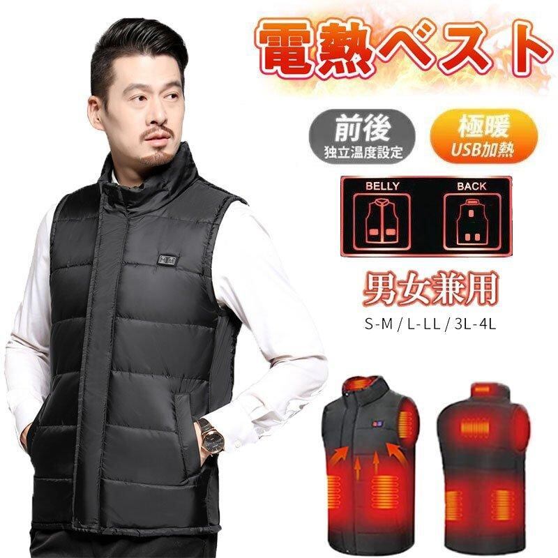 電熱ベスト ヒーターベスト 日本製ヒーター 6つヒーター USB電熱ジャケット 前後独立温度設定 3段階温度調整 防寒着 水洗い可能 釣り バイクp2108531596ab