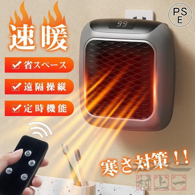 セラミックヒーター 小型 壁掛け 省エネ ヒーター 電気温風機 リモコン付き 12時間タイミング 3段階温度切替 転倒自動オフ 過熱保護 扇風機 家庭用 足元 暖房
