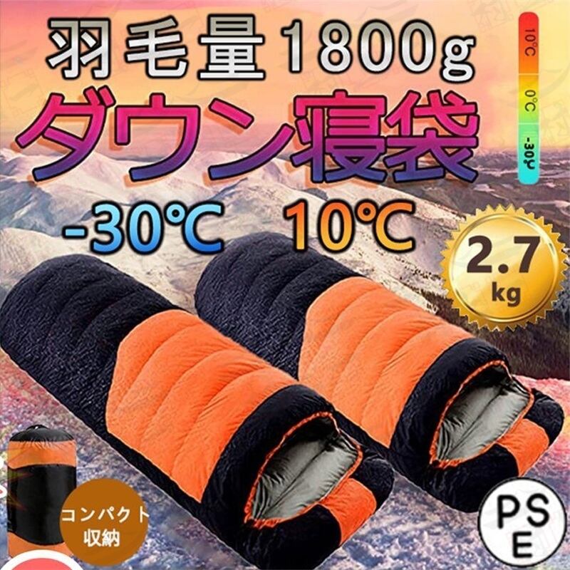 寝袋 冬用 最強 高級ダウンシュラフ 封筒型 防水保温圧縮袋付き コンパクト収納 洗い可能 最低使用温度-30℃ アウトドア 山登り コスパ バイク