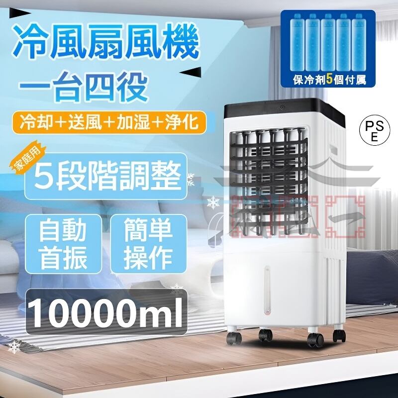 2024最新版 冷風扇 業務用 扇風機 冷風機 一台四役 サーキュレーター 小型 卓上 羽なし おしゃれ 保冷剤5個付 静音 10L大容量 自動首振り リビング 熱中症対策