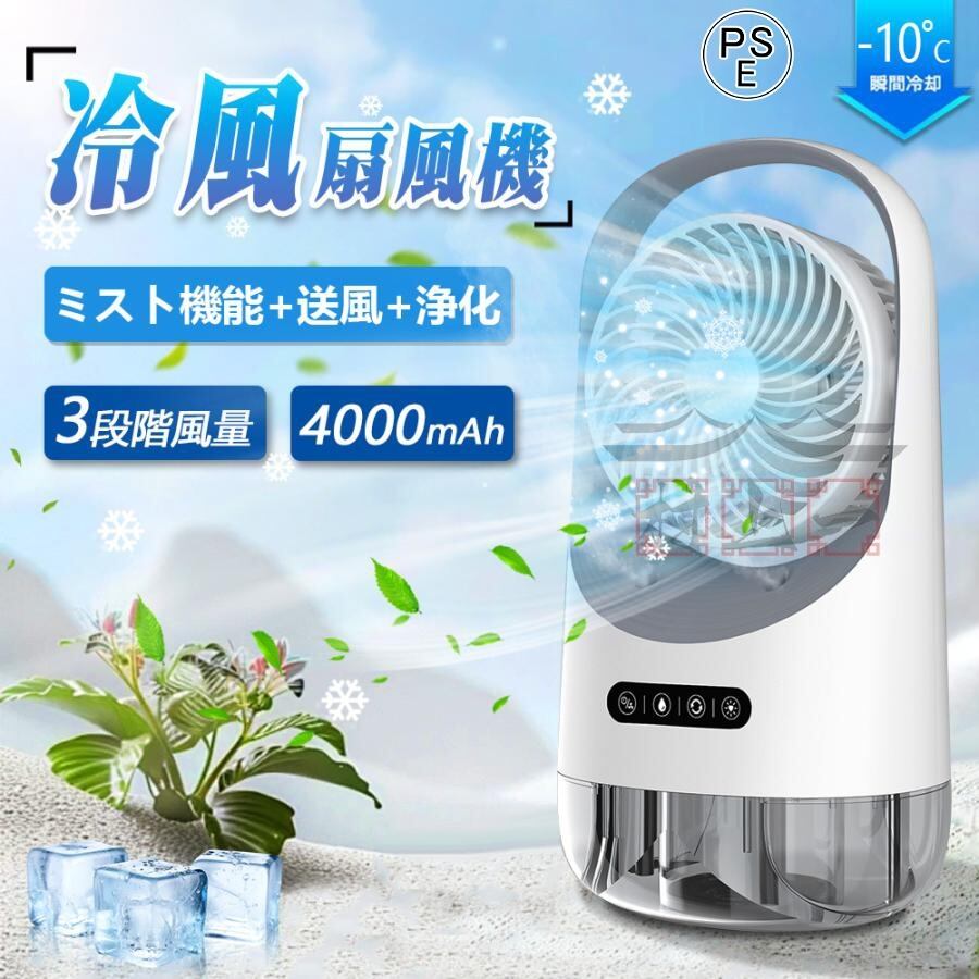 冷風機 冷風扇 卓上扇風機 小型 静音 ミニクーラー ポータブルエアコン 氷 加湿 3段階風量 自動首振り 卓上 USB扇風機 強力 涼しい USB充電 空気清浄 2024最新型