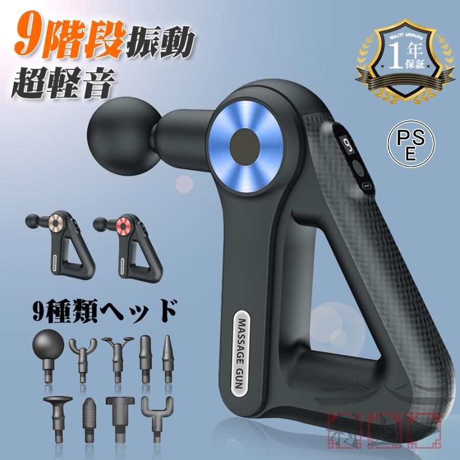 マッサージ器 マッサージガン 軽量 小型 電動 筋膜リリース ガン 肩こり 全身 マッサージ 充電式 9段階調節 9種類ヘッド 肩 腰 マッサージ機 グッズ プレゼント
