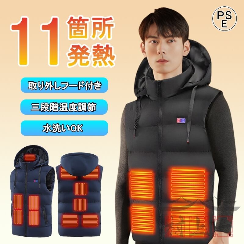 電熱ベスト 11箇所発熱 ワークマン 3段階調温 速暖 速暖 取り外しフード 給電式 水洗い 2種接続口 電熱ジャケット ヒーターベスト 加熱ベスト 男女兼用 防寒対策